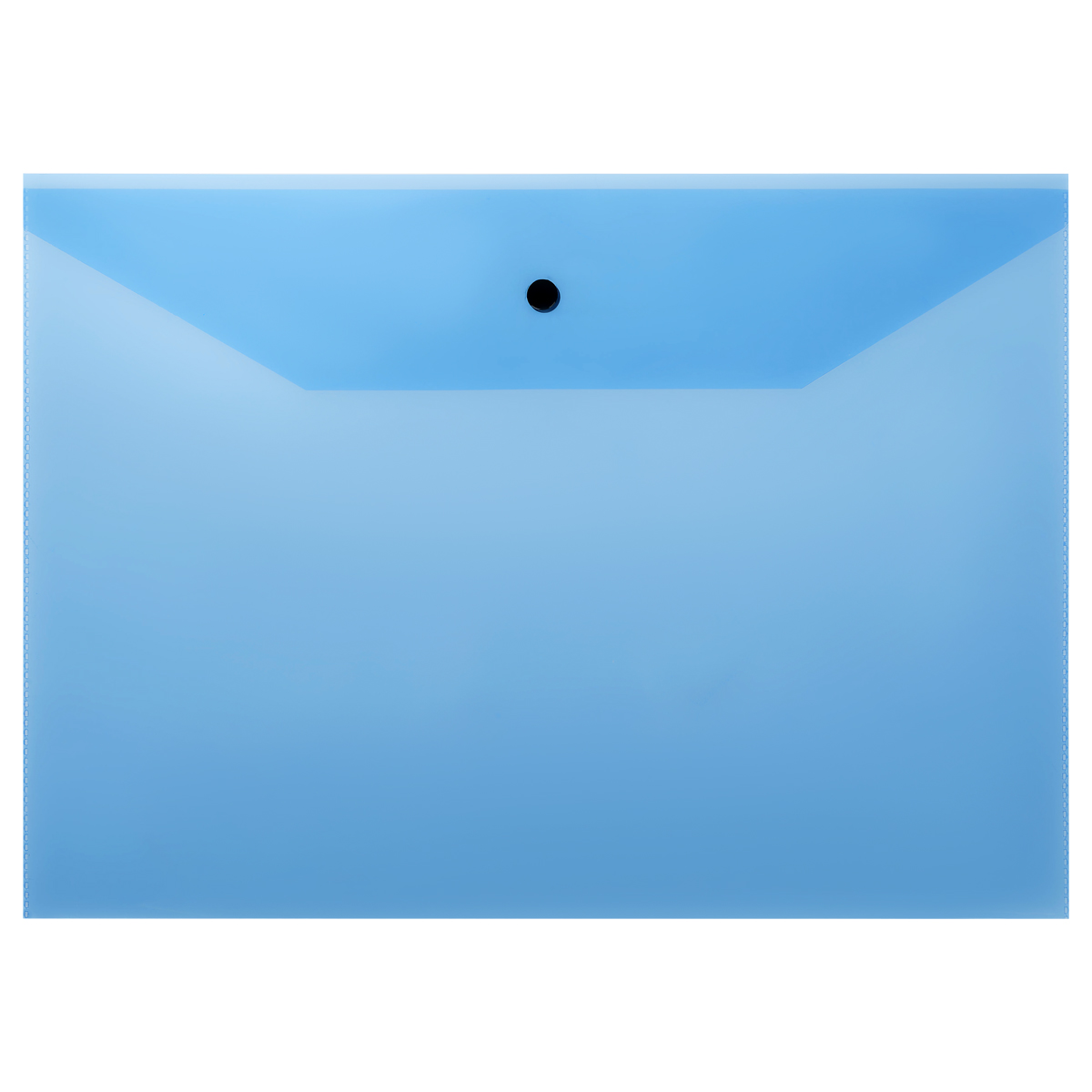 Папка-конверт на кнопке СТАММ А4, 120мкм, пластик, прозрачная, синяя
