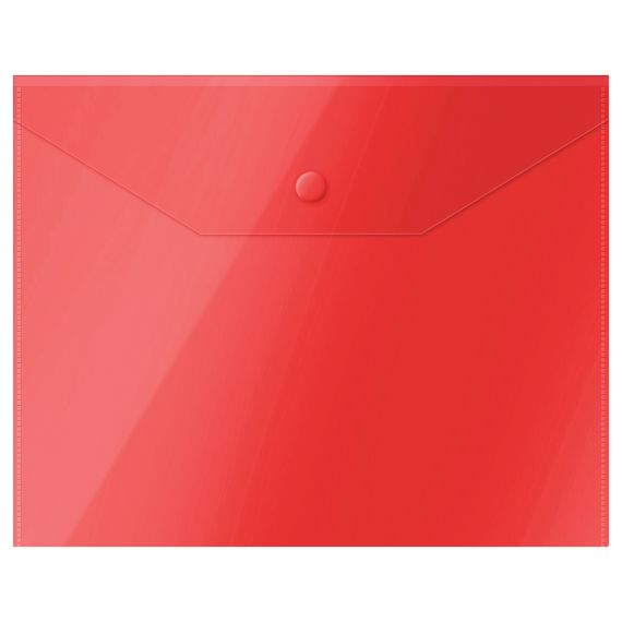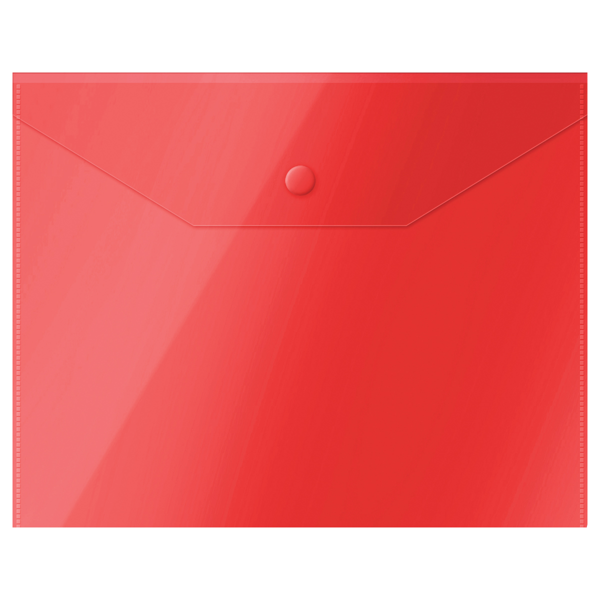 Папка-конверт на кнопке СТАММ А5 (190*240мм), 150мкм, пластик, прозрачная, красная