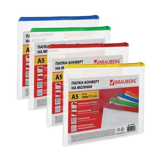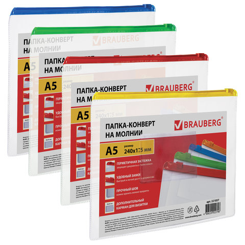 Удобное хранение, быстрый доступ и надежная защита для ваших важных документов. Приобретайте папки-конверты на молнии BRAUBERG. Оформление заказа займёт считаные секунды.