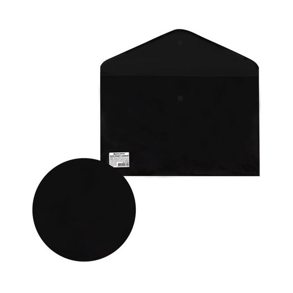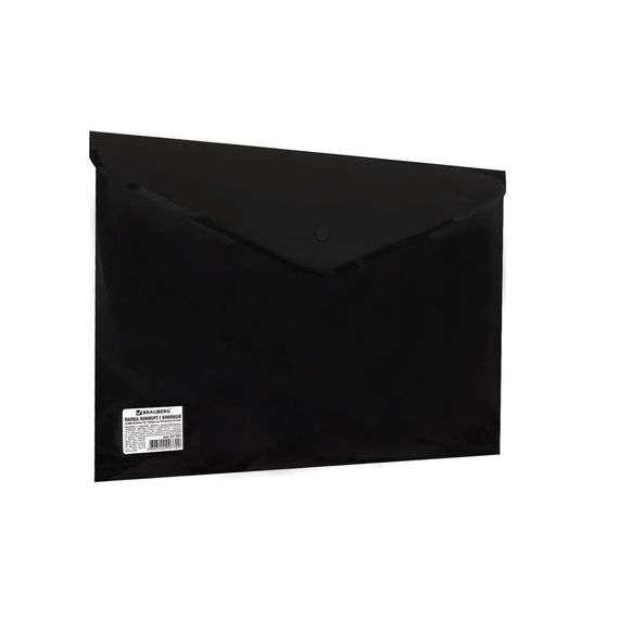 Папка-конверт с гладкой фактурой формата А4 изготовлена из плотного пластика черного цвета толщиной 200 мкм. Закрывается на защелку-кнопку, что делает удобным частое использование и обеспечивает быстрый доступ к ее содержимому. Папка способна вместить до 100 листов стандартной плотности.