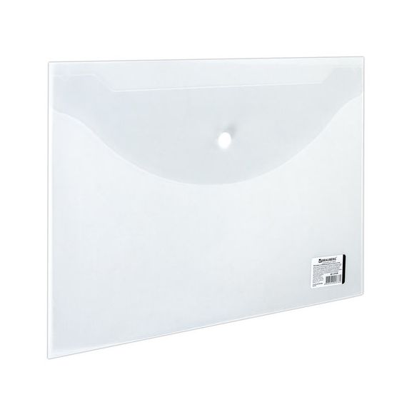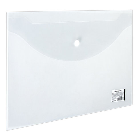 Папка-конверт с кнопкой BRAUBERG, А4, до 100 листов, прозрачная, 0,15 мм