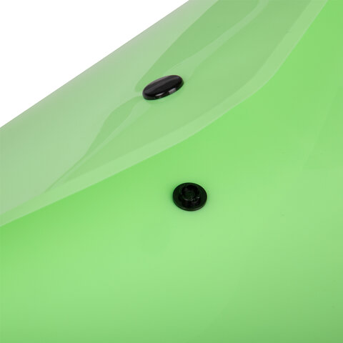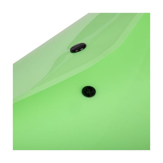 Папка-конверт с гладкой фактурой формата А4 изготовлена из плотного непрозрачного пластика мятного цвета толщиной 180 мкм. Закрывается на защелку-кнопку, что делает удобным частое использование и обеспечивает быстрый доступ к ее содержимому. Папка способна вместить до 100 листов стандартной плотности.