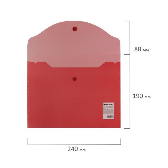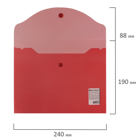 Папка-конверт с кнопкой МАЛОГО ФОРМАТА (240х190 мм), А5, прозрачная, красная, 0,18 мм, BRAUBERG, 224