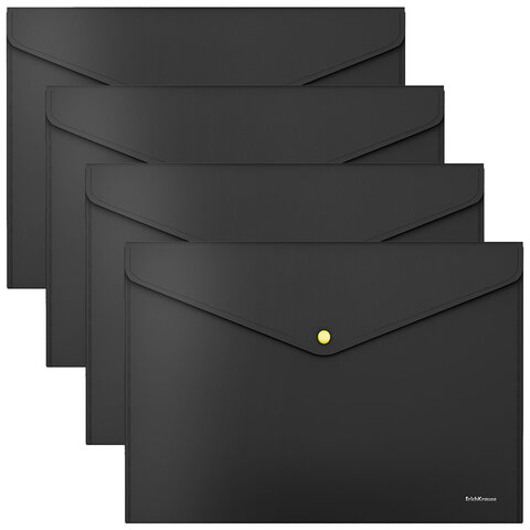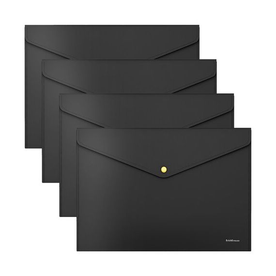 Папка-конверт с неоновой кнопкой ERICH KRAUSE, А4, до 120 листов, матовая черная, 0,18 мм