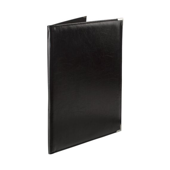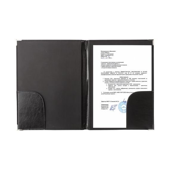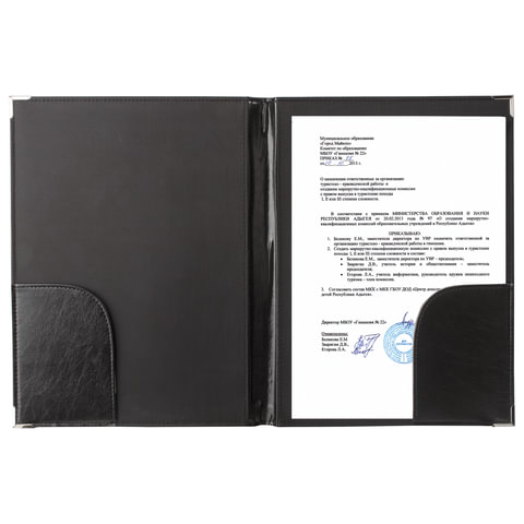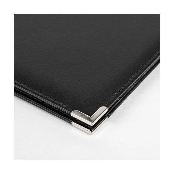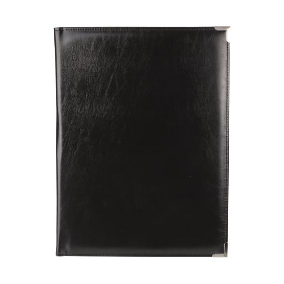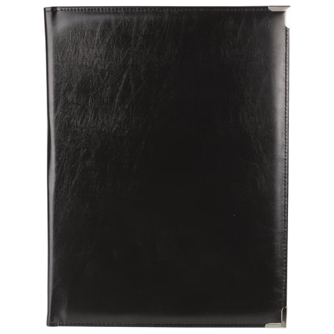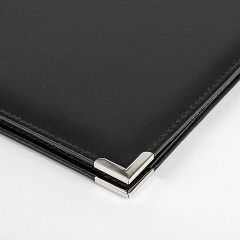 Адресная папка выполнена из качественного кожзаменителя и прошита по краям. Для повышения прочности папки предусмотрены металлические уголки.