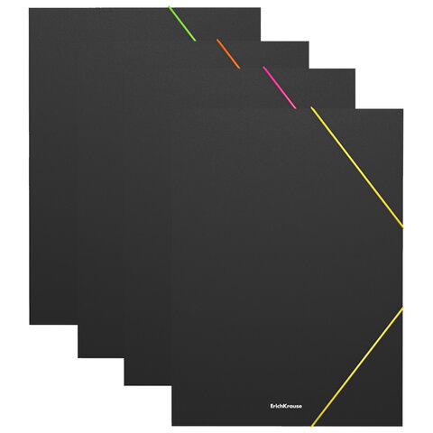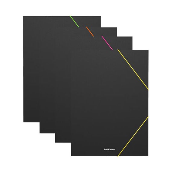 Цвет папки - черный; цвет резинок - ассорти: желтый, зеленый, оранжевый, розовый.