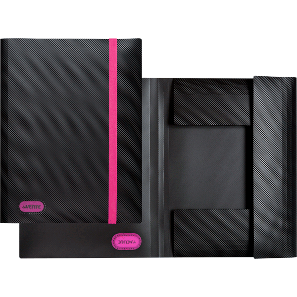 Папка с резинкой "deVENTE. MonoChrome" A4 (320x235 мм) 500 мкм, с рельефной фактурной поверхностью, вертикальная неоновая розовая резинка 15 мм, 3 клапана, индивидуальная маркировка, непрозрачная черная с неновым розовым