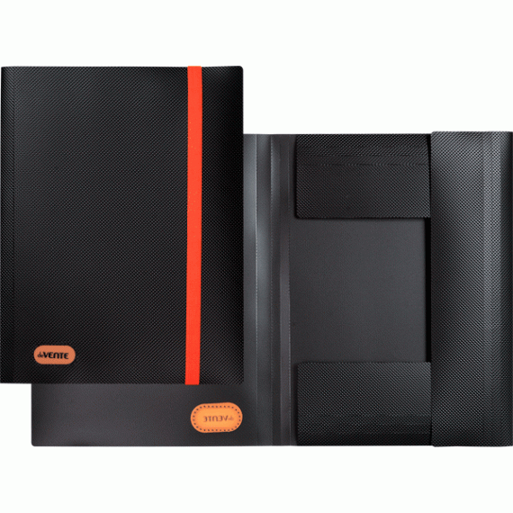 Папка с резинкой "deVENTE. MonoChrome" A4 (320x235 мм) 500 мкм, с рельефной фактурной поверхностью, вертикальная неоновая оранжевая резинка 15 мм, 3 клапана, индивидуальная маркировка, непрозрачная черная с неновым оранжевым