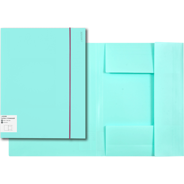 Папка с резинкой "deVENTE. Pastel" A4 (245х315 мм) 450 мкм, фактура "песок" вертикальная резинка, 3 клапана, индивидуальная маркировка, непрозрачная бирюзовая