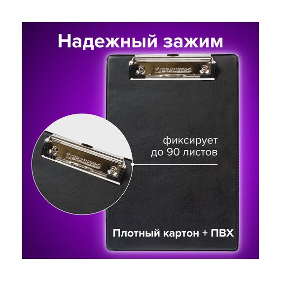 Доска-планшет МАЛЫЙ ФОРМАТ (158х230 мм), А5, BRAUBERG "NUMBER ONE "с прижимом, картон/ПВХ, ЧЕРНАЯ