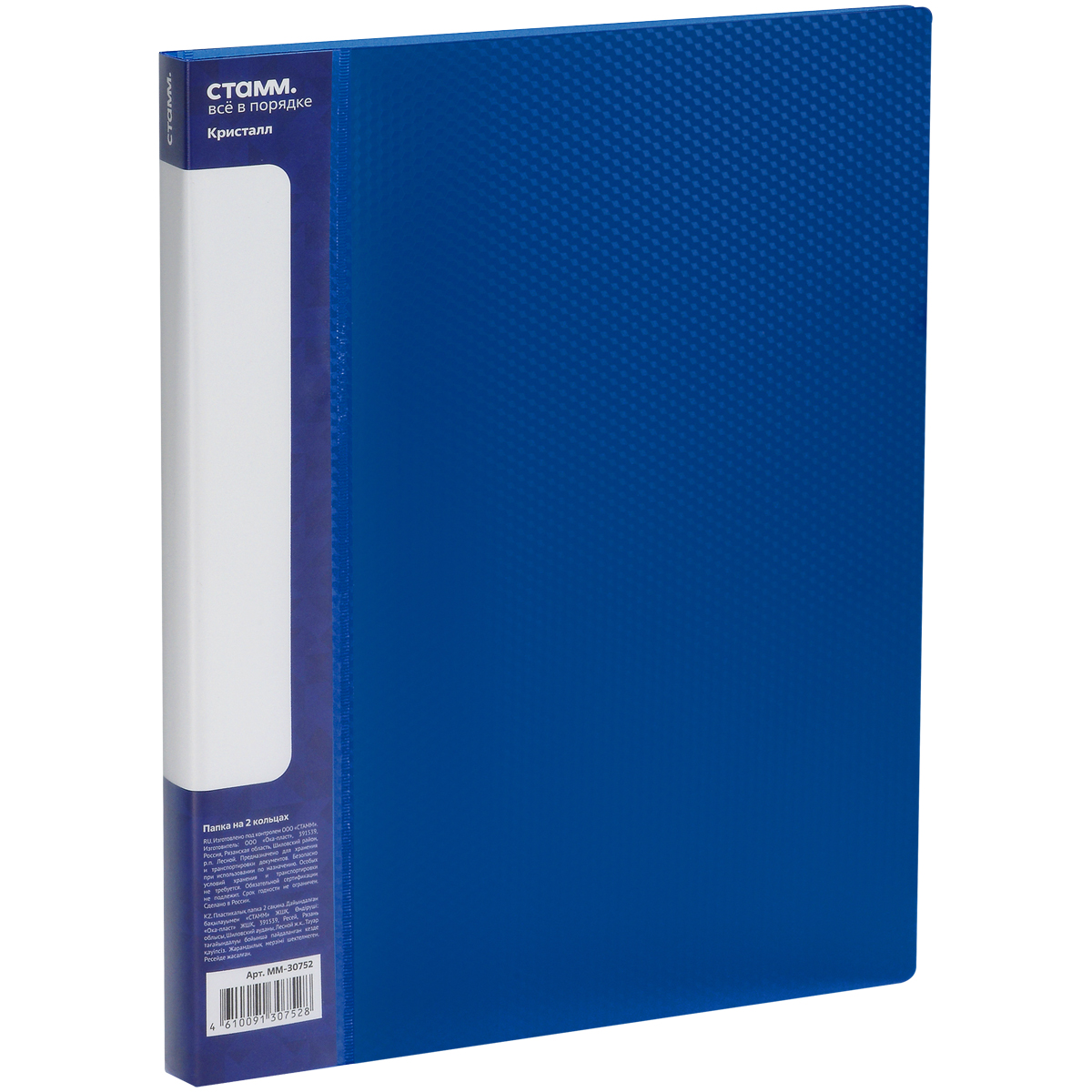 Папка на 2 кольцах СТАММ "Кристалл" А4, 25мм, 700мкм, пластик, синяя