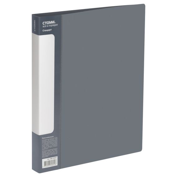 Папка на 4 кольцах СТАММ "Стандарт" А4, 25мм, 700мкм, пластик, серая