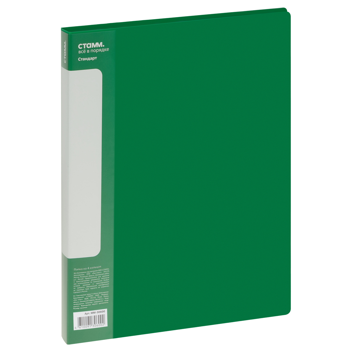 Папка на 4 кольцах СТАММ "Стандарт" А4, 25мм, 700мкм, пластик, зеленая