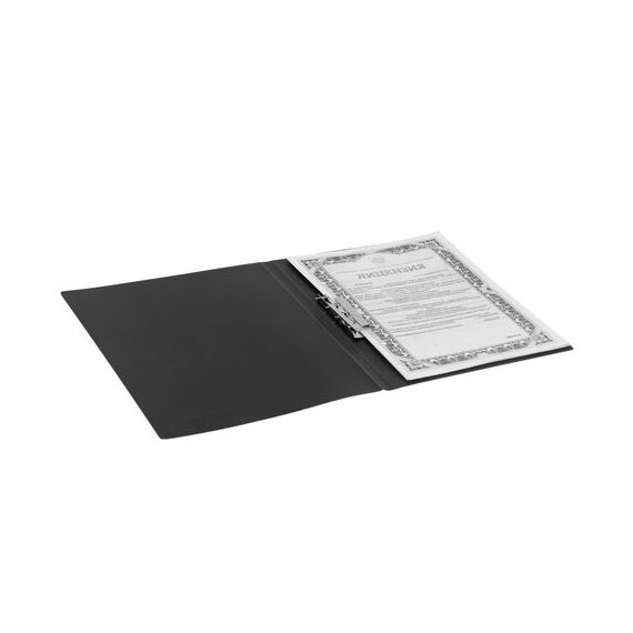 Изготовлена из качественного пластика толщиной 500 мкм с оригинальной фактурой "песок". Обеспечивает хранение до 100 листов формата А4. Снабжена боковым прижимом, который обеспечивает надежную фиксацию документов. Размер - 230х310 мм. Выполнена в черном цвете. Поставляется в индивидуальной упаковке.