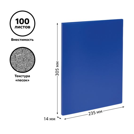 Папка с зажимом «СТАММ» предназначена для хранения бумаг формата А4. Цвет папки – синий. Папка изготовлена из качественного полипропилена плотностью 500 мкм с текстурой «песок». Тип скрепления – зажим. Размер изделия составляет 235*305 мм. Ширина корешка – 14 мм позволяет вмещать в папку до 100 листов. Боковой зажим надежно фиксирует документы. Папка упакована в индивидуальный пакет.