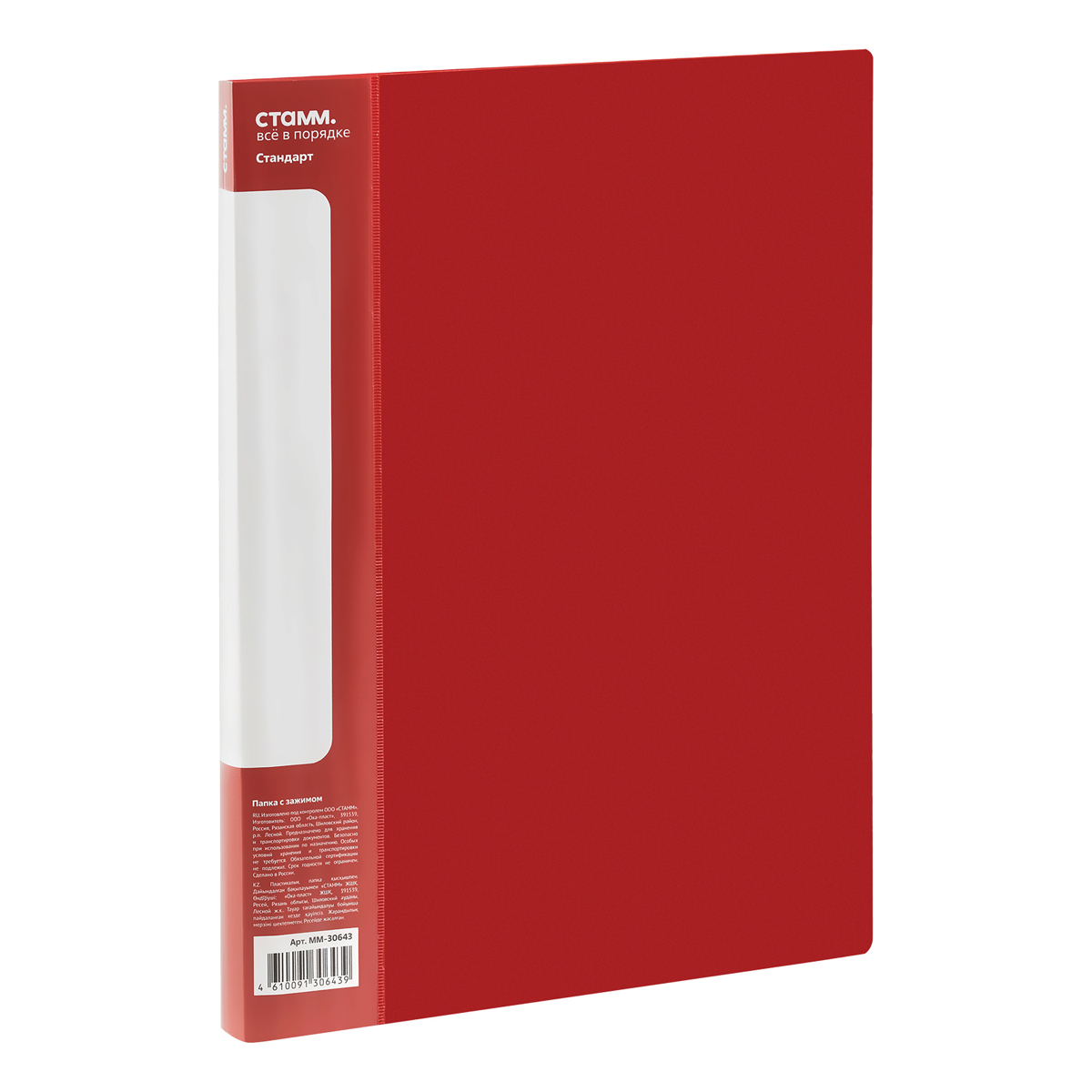 Папка с боковым зажимом СТАММ "Стандарт" А4, 17мм, 700мкм, пластик, красная