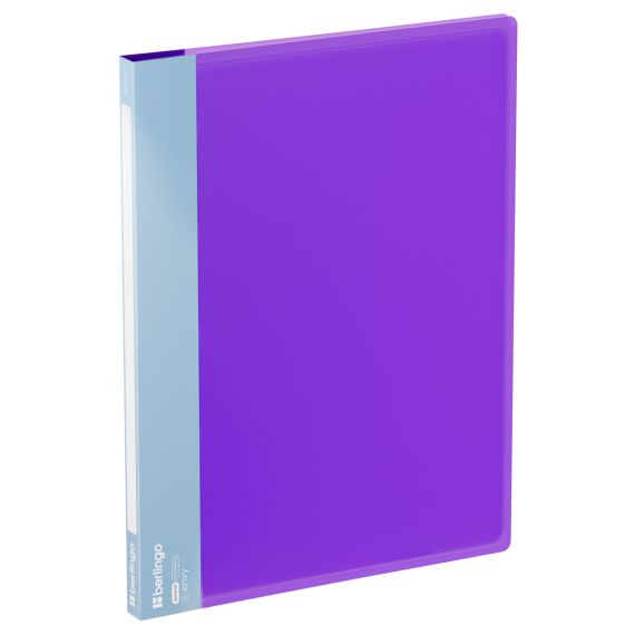 Папка с пружинным скоросшивателем Berlingo Envy размером 350*235*17 мм – отличный и стильный помощник для хранения документов с плотной обложкой и внешним карманом. Толщина обложки – 700 мкм. Цвет – полупрозрачный фиолетовый. Папка изготовлена из высококачественного полипропилена с фактурой «песок», на которой не видно отпечатков пальцев и мелких царапин. На внешней стороне корешка располагается карман с бумажной вкладкой, для подписи содержимого и удобной сортировки документов в хранилище. Вместимость папки – 150 листов, ширина корешка – 17 мм. Пружинный механизм надежно закрепляет перфорированные документы и документы, помещенные в файлы-вкладыши. На внутренней стороне обложки папка оснащена плотным прозрачным карманом для удобного хранения мелочей: ручки, заметок, визиток, дисков, флешек и прочего. Папка предназначена для транспортировки и хранения бумаг, защищает их от пыли. Упакована в индивидуальный прозрачный пакет по форме. Поставляется в специальных шоу-боксах в качестве промежуточной упаковки.
