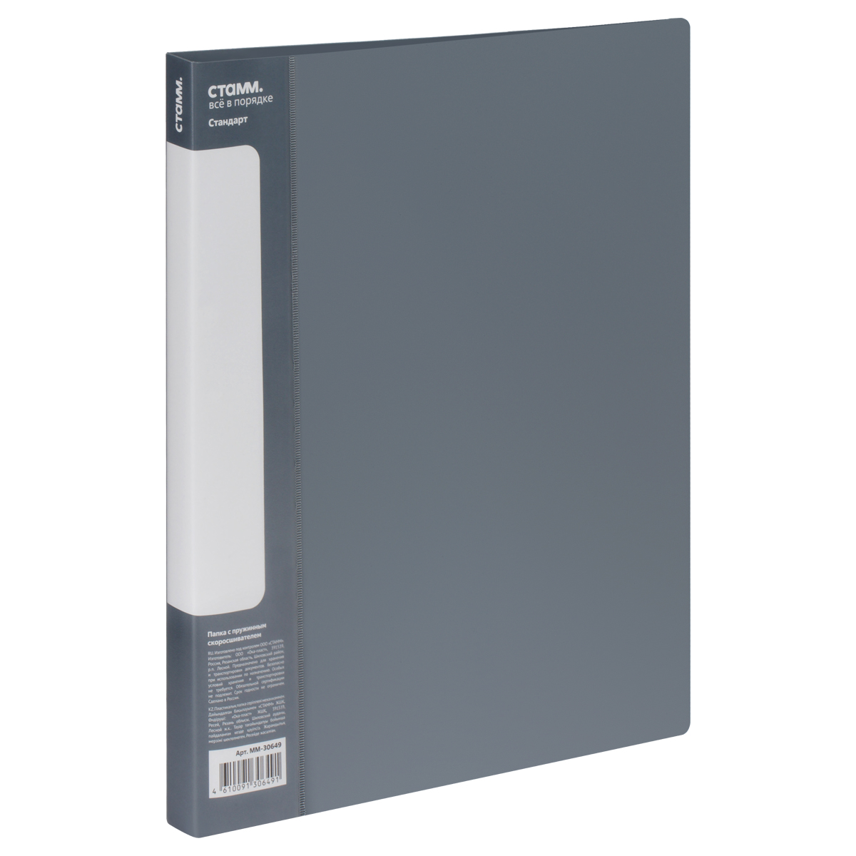Папка с пружинным скоросшивателем СТАММ "Стандарт" А4, 17мм, 700мкм, пластик, серая