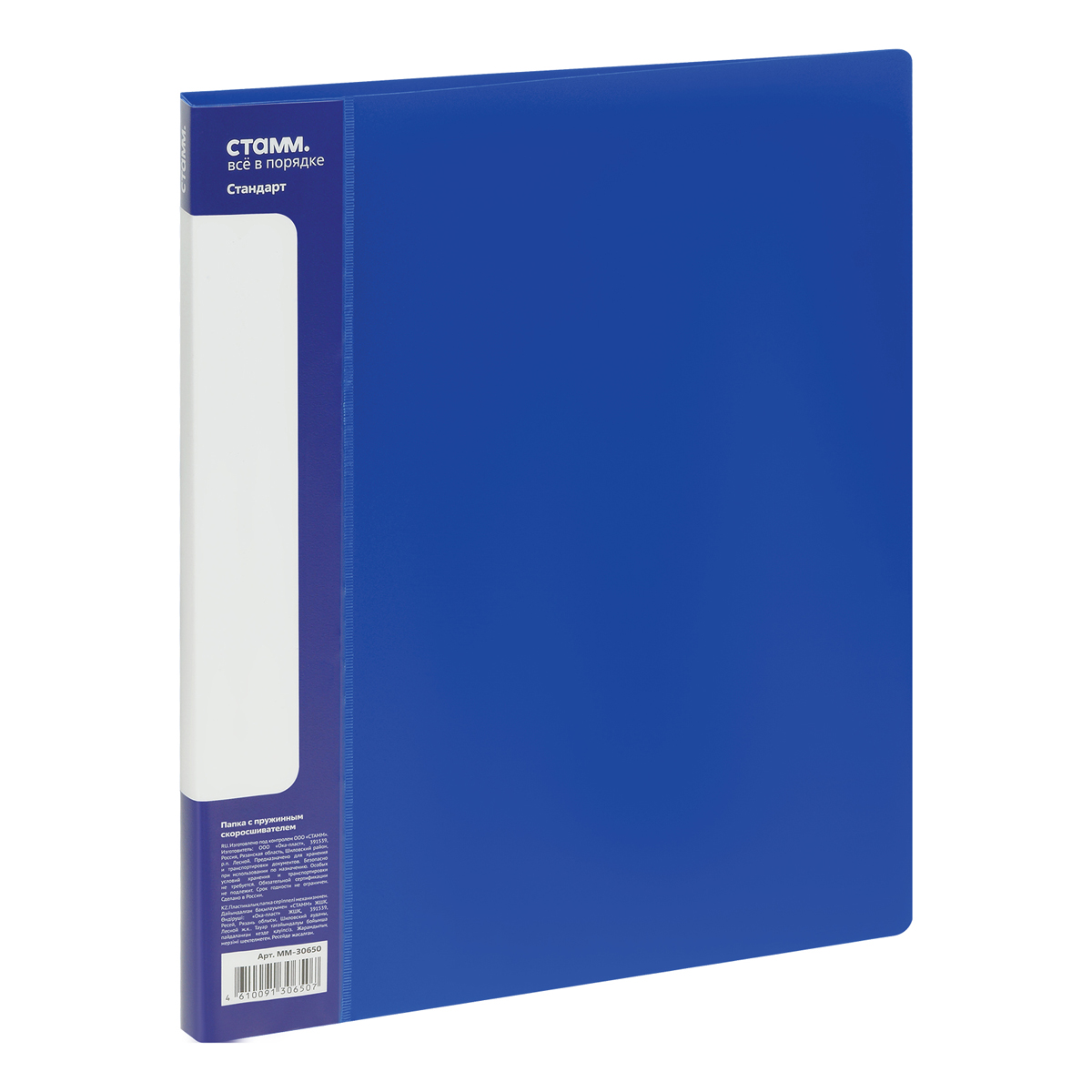 Папка с пружинным скоросшивателем СТАММ "Стандарт" А4, 17мм, 700мкм, пластик, синяя