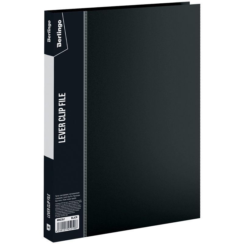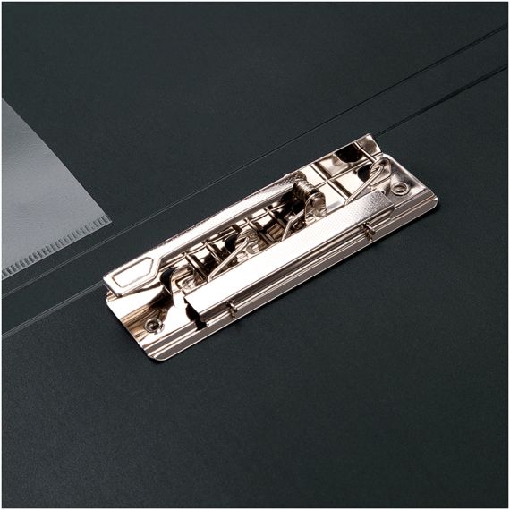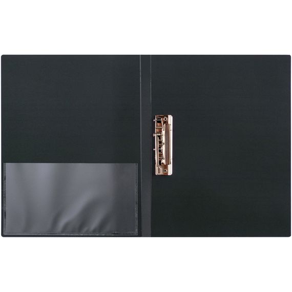 Папка с зажимом Berlingo серии Standard размером 350*235*17 мм изготовлена из плотного пластика толщиной 0,7 мм с текстурой «песок». Вместимость папки – 100 листов, ширина корешка – 17 мм, на корешке имеется карман для сменной этикетки. Металлический зажим надежно фиксирует документы, не повреждая их. Дополнительный внутренний карман. Папка выполнена в классическом чёрном цвете и предназначен для транспортировки и хранения бумаг, защищает их от пыли. Индивидуальная упаковка в пакет.