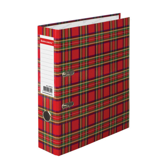 Папка формата А4 с вертикальной ориентацией изготовлена из качественного износоустойчивого картона с ламинированным бумажным покрытием. Благодаря такому плотному покрытию допустима влажная уборка изделия. Ширина корешка в 75 мм позволяет разместить до 500 листов. Прорези для колец на внешней крышке позволяют оставаться папке закрытой даже при большом количестве бумаг, а надежный арочный механизм легко справляется с ежедневными нагрузками. Корешок снабжен этикеткой для маркировки содержимого, что позволяет структурировать информацию. Такая папка станет незаменимым помощником для работников с документацией, а запоминающийся шотландский дизайн папки-регистратора выделит ее в ряду других.