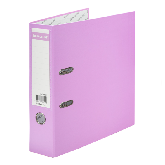 Папка формата А4 с вертикальной ориентацией изготовлена из высококачественного износоустойчивого картона с бумажным покрытием лилового цвета и матовой ламинацией. Ширина корешка в 75 мм позволяет разместить до 500 листов. Прорези для колец на внешней крышке позволяют оставаться папке закрытой даже при большом количестве бумаг, а надежный арочный механизм легко справляется с ежедневными нагрузками. Корешок папки снабжен этикеткой для маркировки содержимого, что позволяет структурировать информацию.