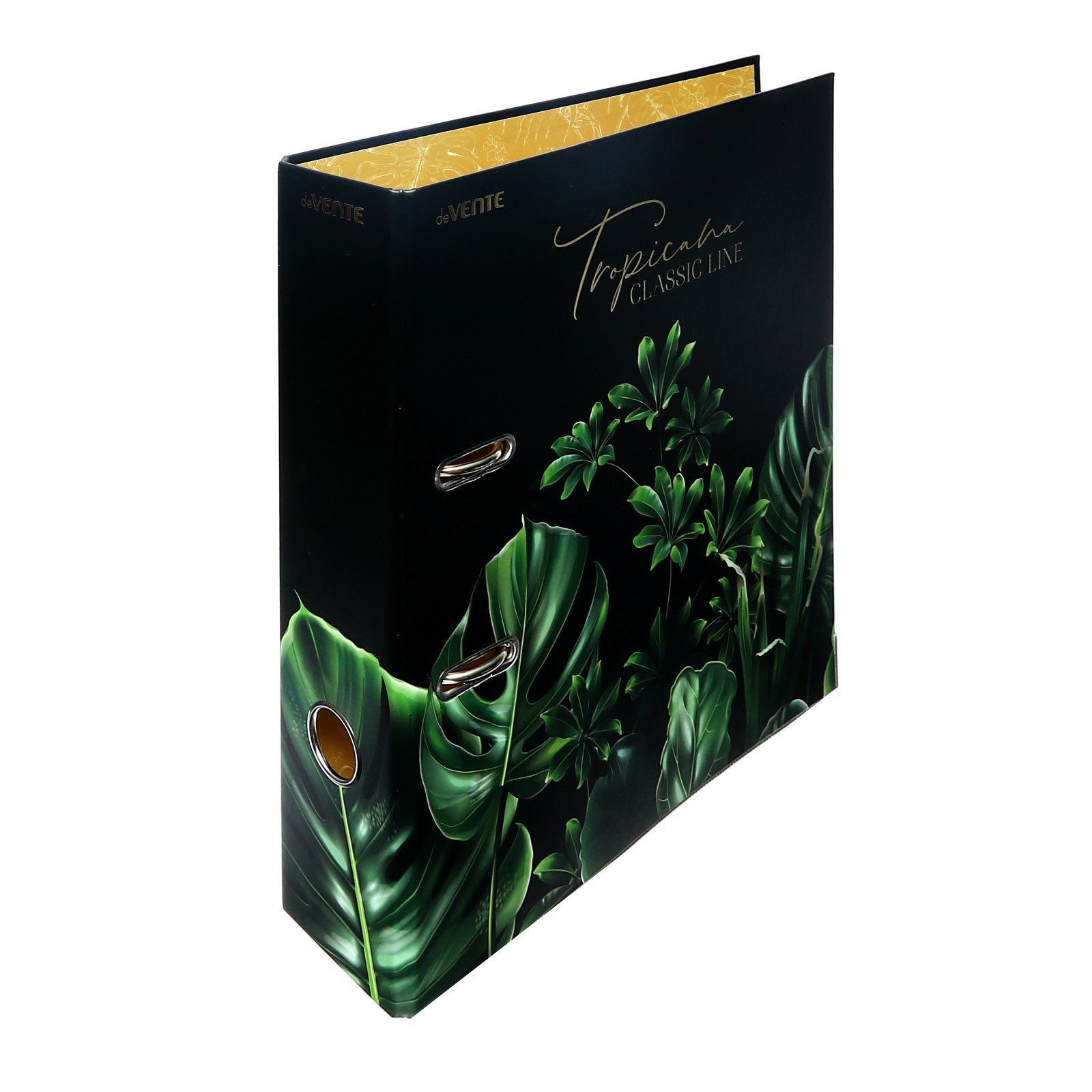 Папка с арочным механизмом "deVENTE. Tropicana" A4 75 мм разобранная картонная, матовая ламинация, цветная запечатка, тиснение фольгой, металлическая окантовка, цветная запечатка форзаца, индивидуальная упаковка
