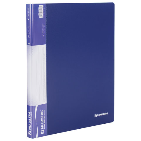 На корешке имеется карман для маркировки содержимого. Папка изготовлена из качественного пластика толщиной 0,6 мм с антибликовой фактурой, а ширина корешка составляет 16 мм. Содержит 20 вкладышей, позволяющих хранить документы формата А4 и обеспечивающих их надежную защиту от попадания влаги, пыли и прочих повреждений. Поставляется в индивидуальной упаковке.