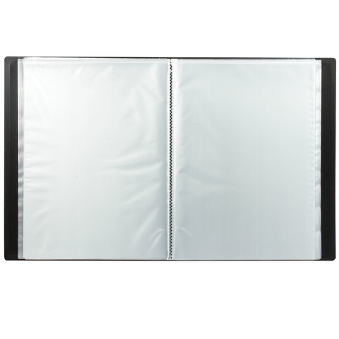 Для маркировки содержимого на корешок наклеена этикетка. Папка изготовлена из качественного пластика толщиной 0,6 мм с антибликовой фактурой, а ширина корешка составляет 35 мм. Содержит 60 вкладышей, позволяющих хранить документы формата А4 и обеспечивающих их надежную защиту от попадания влаги, пыли и прочих повреждений.