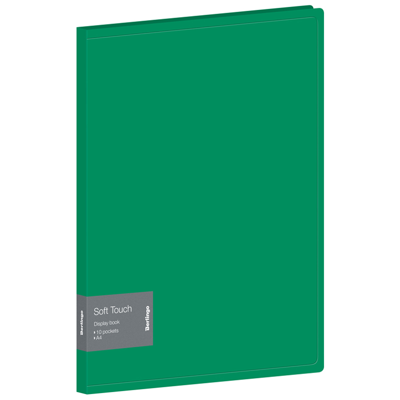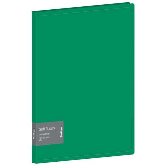 Папка с 10 вкладышами Berlingo "Soft Touch" А4, 17мм, 700мкм, зеленая, с внутр. карманом