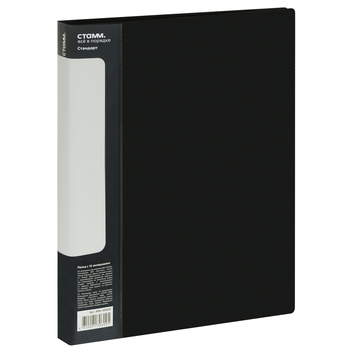 Папка с 10 вкладышами СТАММ "Стандарт" А4, 9мм, 600мкм, пластик, черная