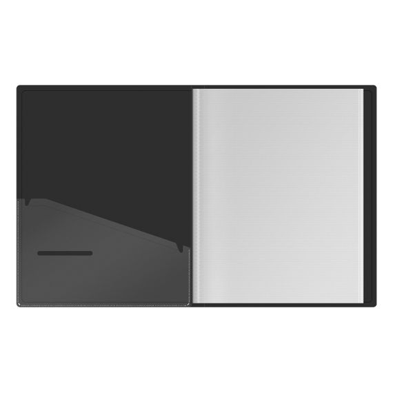 Папка Berlingo серии DoubleBlack с 20 вкладышами формата А4 - отличный и стильный помощник для хранения документов черного цвета с рельефным рисунком UV-лаком. Толщина обложки - 600 мкм. Тип скрепления – термосварка. Ширина корешка - 17 мм. Папка изготовлена из высококачественного полипропилена с матовой текстурой поверхности "песок", на которой не видно отпечатков пальцев и мелких царапин. Внутренняя сторона обложки имеет чёрный цвет и оснащена плотным прозрачным карманом для удобного хранения мелочей: ручки, заметок, визиток, дисков, флешек и др. Папка выполнена в размере 310*233*17 мм. Папка имеет прозрачные листы-карманы увеличенной толщины 30 мкм, надёжно скреплённые сваркой. Вмещает до 100 бумажных листов. Индивидуальная упаковка в прозрачный пакет.