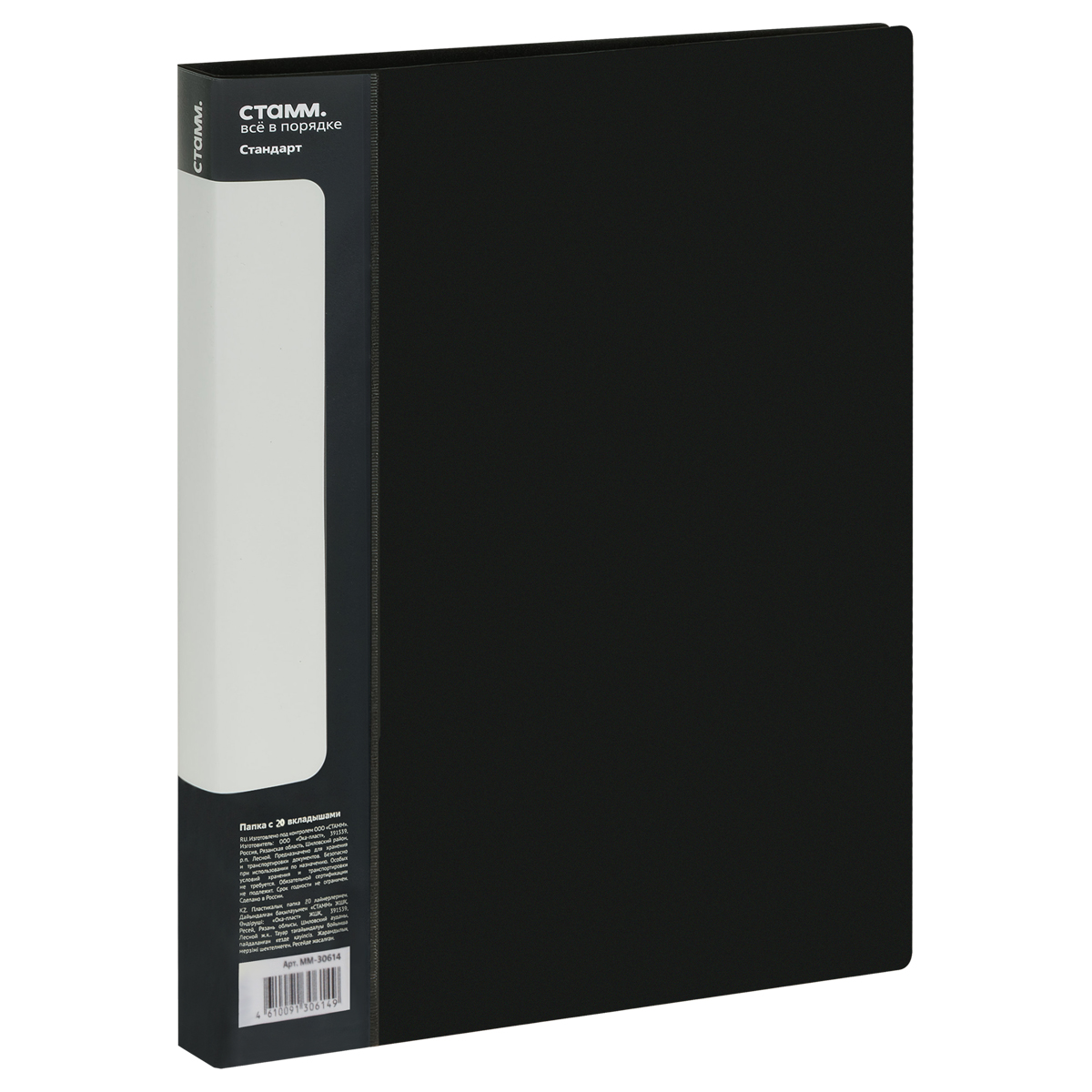Папка с 20 вкладышами СТАММ "Стандарт" А4, 14мм, 600мкм, пластик, черная