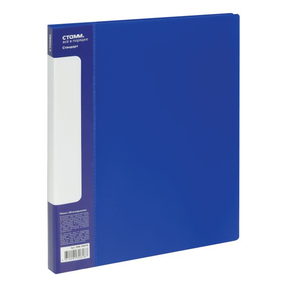 Папка с 30 вкладышами СТАММ "Стандарт" А4, 17мм, 600мкм, пластик, синяя
