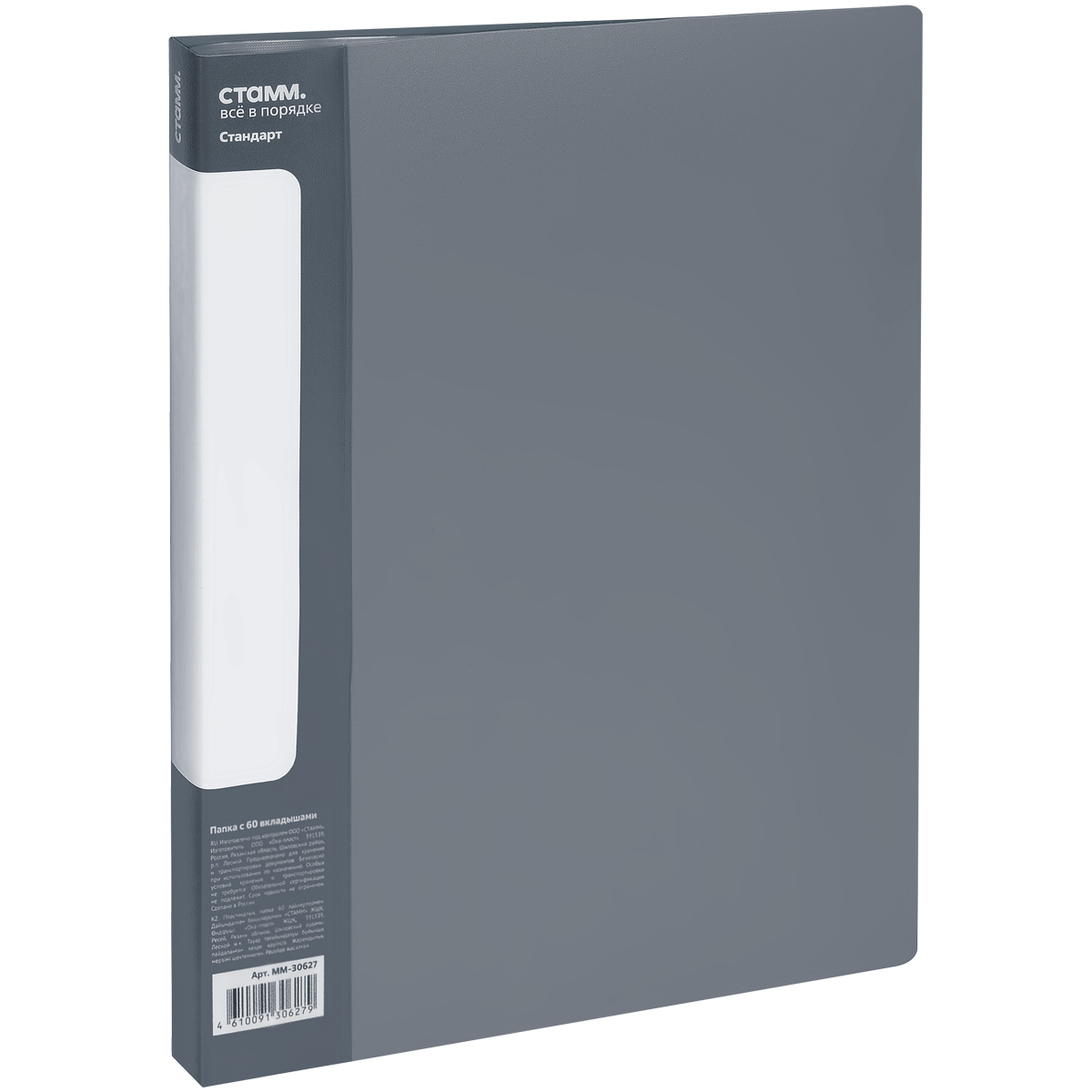 Папка с 60 вкладышами СТАММ "Стандарт" А4, 21мм, 700мкм, пластик, серая