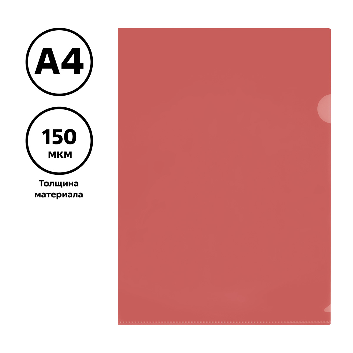 Папка-уголок «СТАММ» формата А4 изготовлена из качественного полипропилена толщиной 150 мкм. Изделие предназначено для хранения и транспортировки документов, защищает бумаги от повреждений и загрязнений. Имеется боковой вырез для удобства использования. Папка вмещает до 50 листов. Цвет – красный.