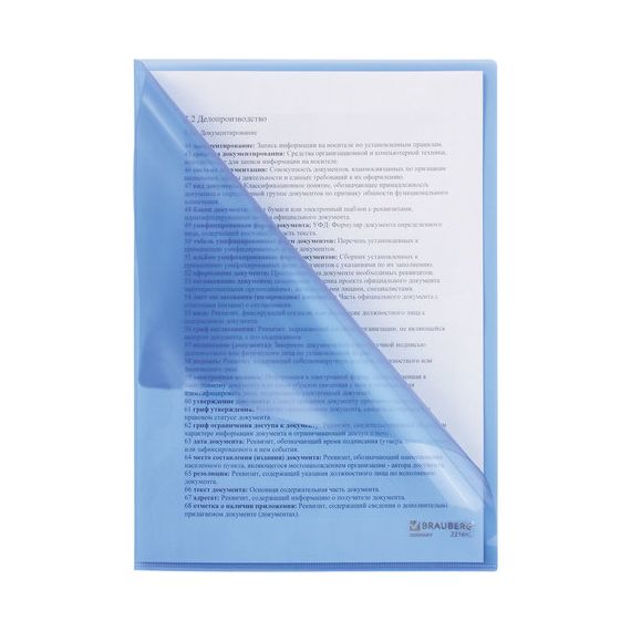 Папка-уголок BRAUBERG предназначена для хранения и транспортировки документов и является незаменимым атрибутом для студента, школьника или офисного работника.
