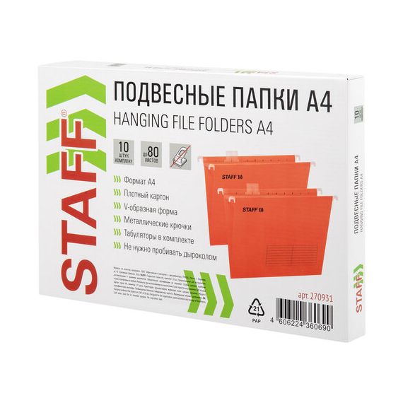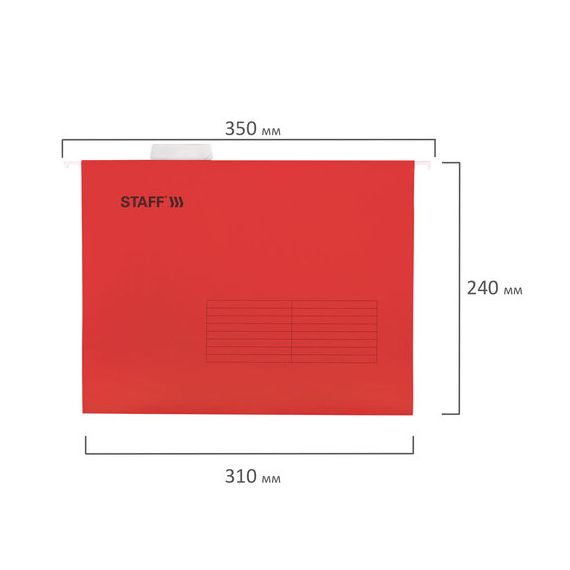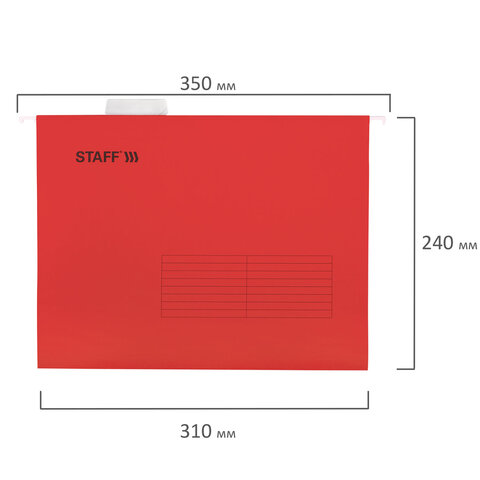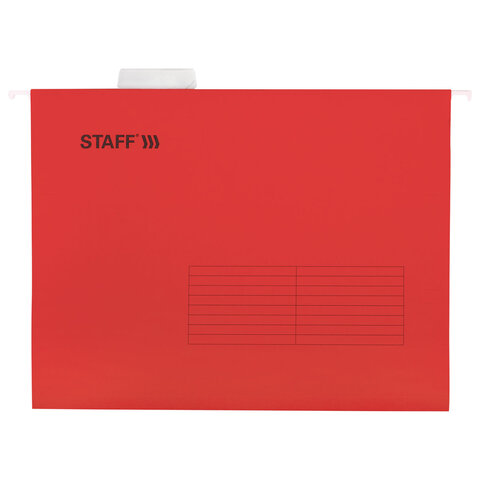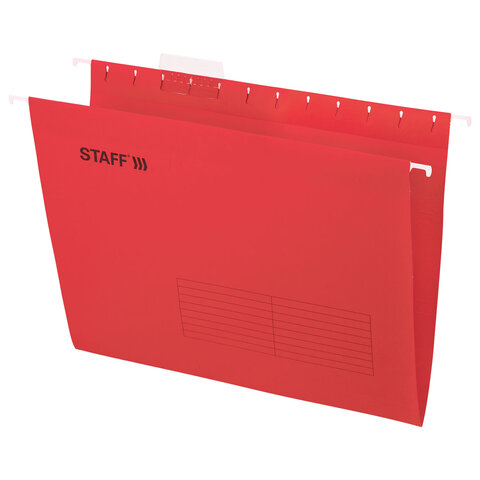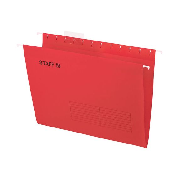 Подвесные папки А4 (350х240 мм) до 80 л., КОМПЛЕКТ 10 шт., красные, картон, STAFF, 270931