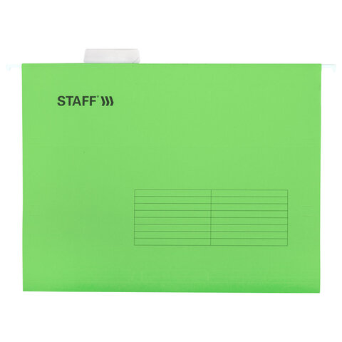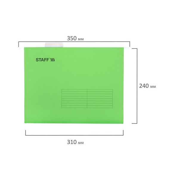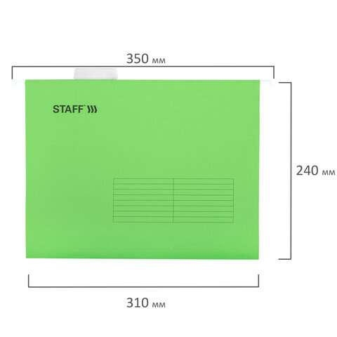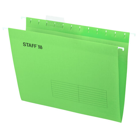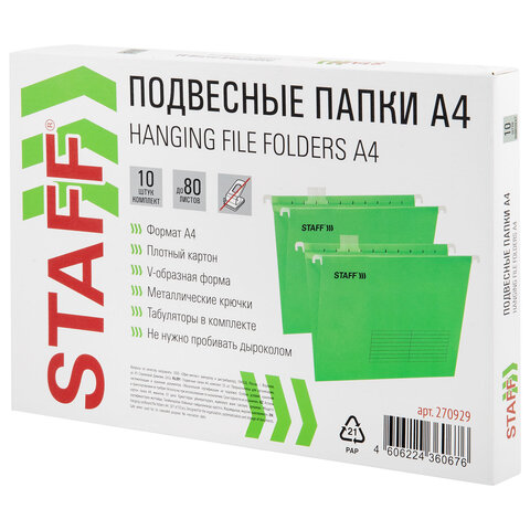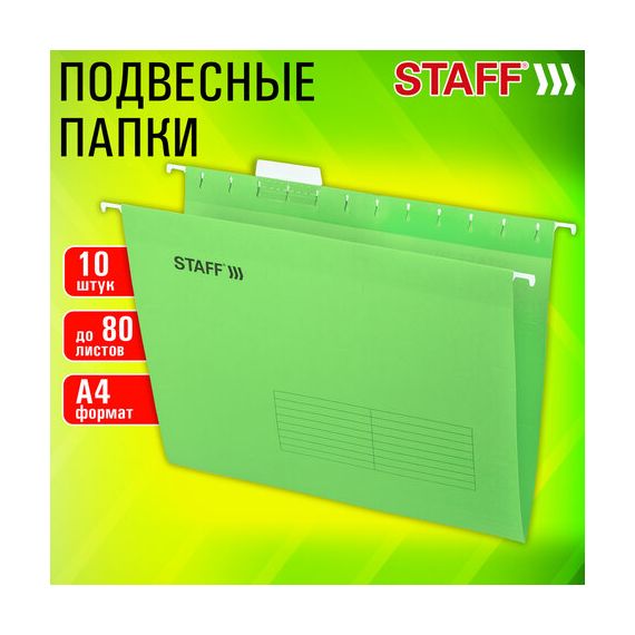 Подвесные папки А4 (350х240 мм) до 80 л., КОМПЛЕКТ 10 шт., зеленые, картон, STAFF, 270929