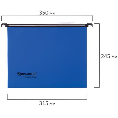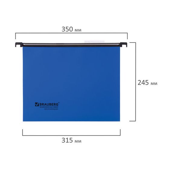 Подвесные папки А4 (350х245 мм), до 80 листов, КОМПЛЕКТ 5 шт., пластик, синие, BRAUBERG (Италия), 231797