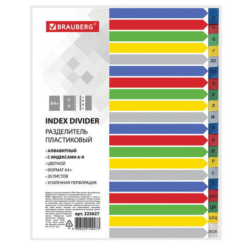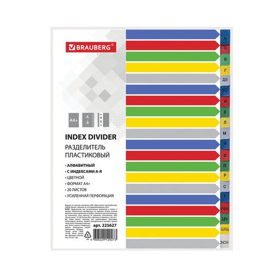 Пластиковые разделители BRAUBERG предназначены для систематизации документов внутри папок формата А4+.