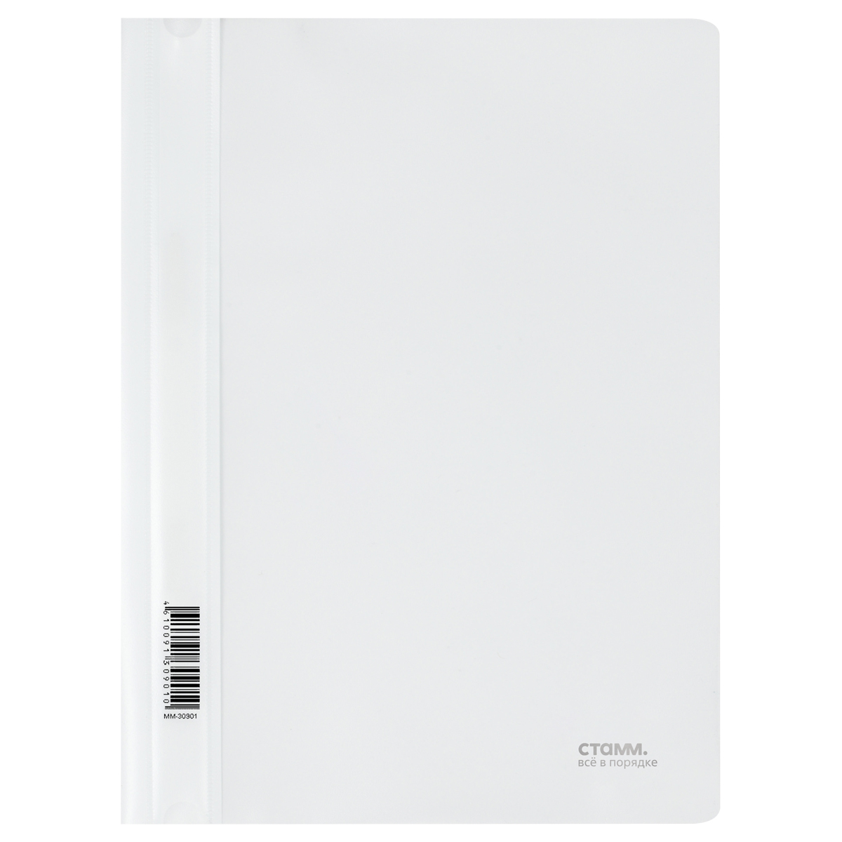 Папка-скоросшиватель «СТАММ» формата А4 предназначена для транспортировки, хранения и систематизации документов. Изделие изготовлено из качественного полипропилена толщиной 180 мкм. Изделие размером 230*310 мм имеет белый цвет с прозрачным верхним листом. Вместимость – до 100 листов. Папка защищает документы от пыли, влаги и прочих повреждений.