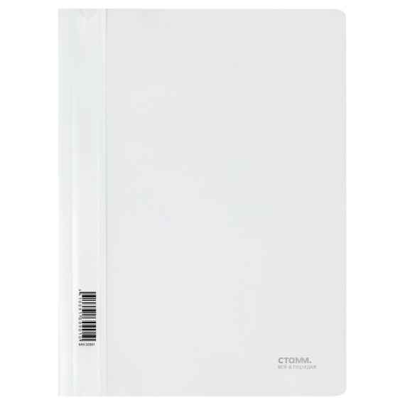 Папка-скоросшиватель пластик. СТАММ А4, 180мкм, белая с прозр. верхом