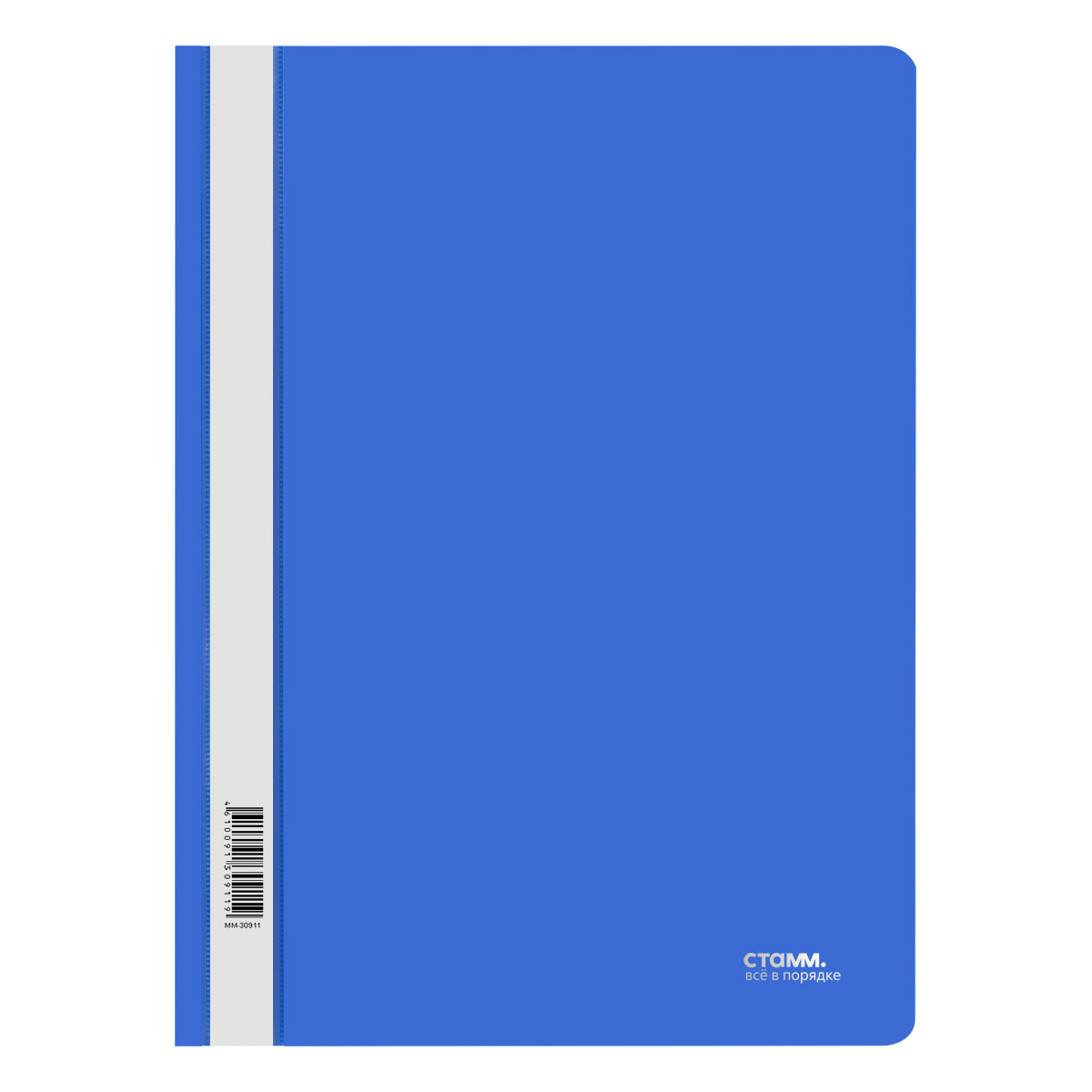 Папка-скоросшиватель «СТАММ» формата А4 предназначена для транспортировки, хранения и систематизации документов. Изделие изготовлено из качественного полипропилена толщиной 180 мкм. Изделие размером 230*310 мм имеет синий цвет с прозрачным верхним листом. Вместимость – до 100 листов. Папка защищает документы от пыли, влаги и прочих повреждений.