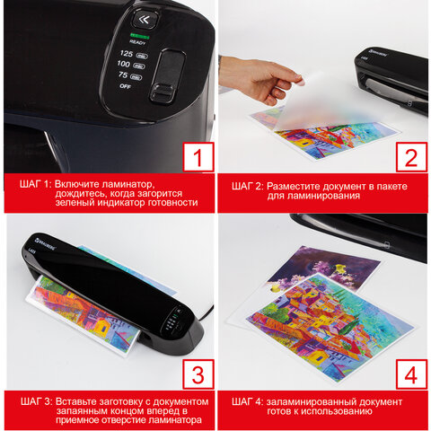 Глянцевая поверхность придает особую привлекательность ламинатору BRAUBERG L435, который не просто впишется в любой интерьер, но даже украсит его.