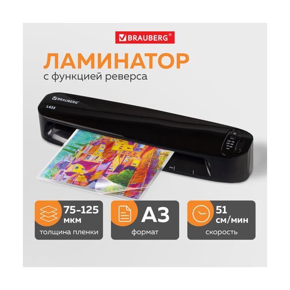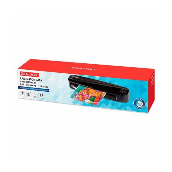 Ламинатор BRAUBERG L435, формат A3, толщина пленки 1 сторона 75-125 мкм, скорость 51 см/мин., 531018