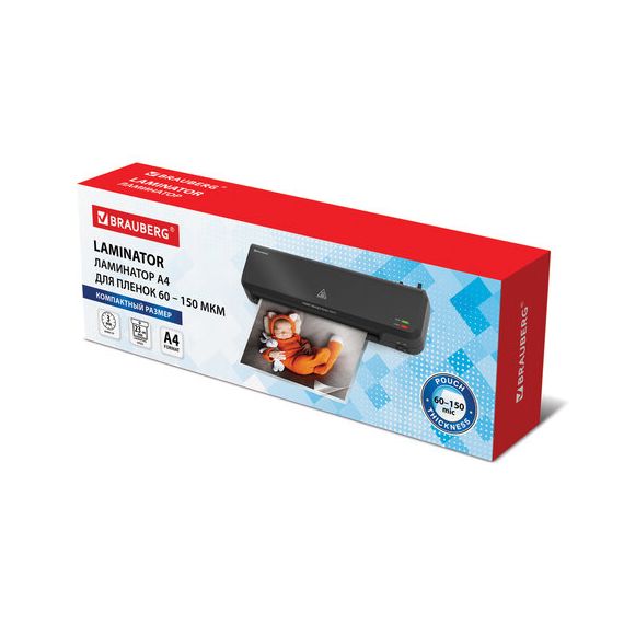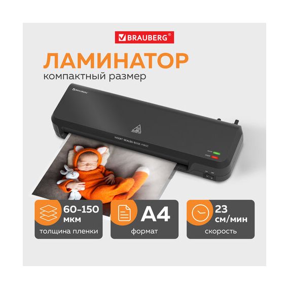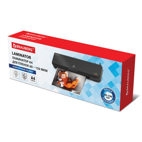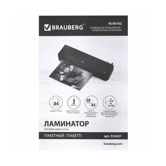 Ламинатор BRAUBERG NANO PLUS, формат A4, толщина пленки 60-150 мкм, скорость 23 см/мин., 532621