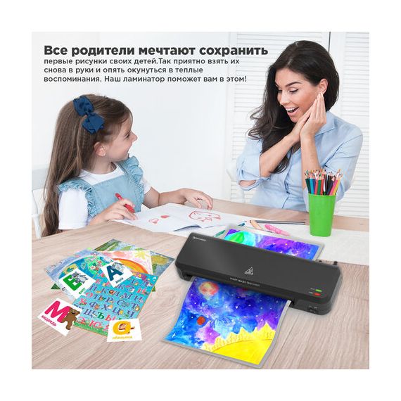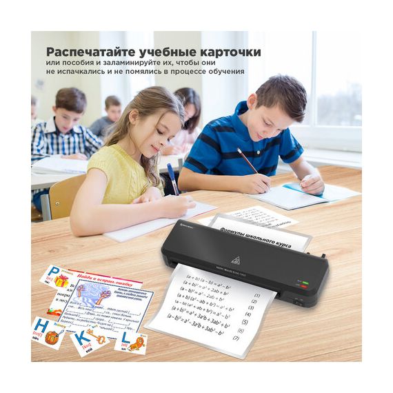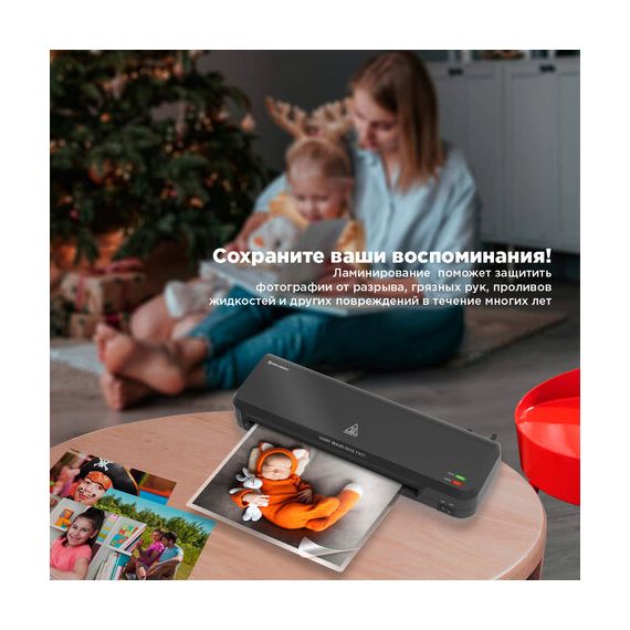 Способен заламинировать документы различных размеров – от визитки до листа формата А4. Ламинирует 1 документ формата А4 в пакетах толщиной 2х60, 2x75, 2x80, 2x100, 2х125 и 2х150 мкм за 1 минуту.