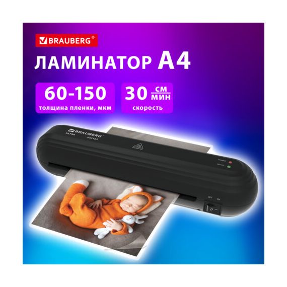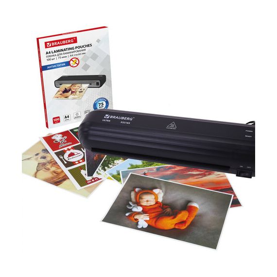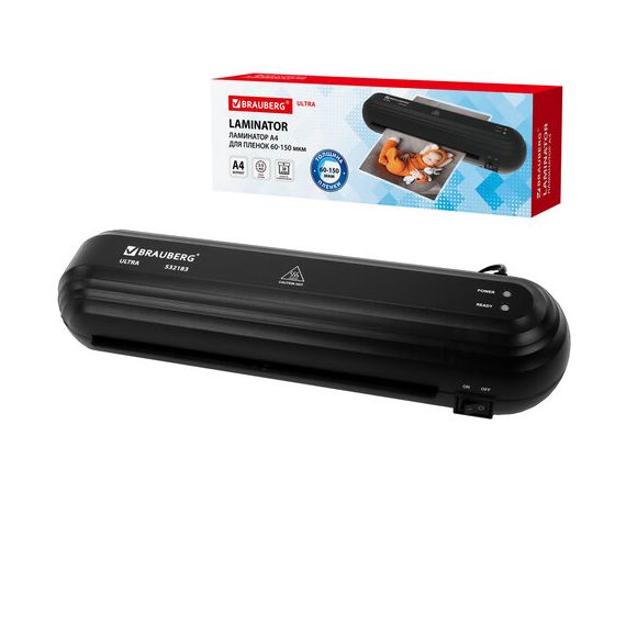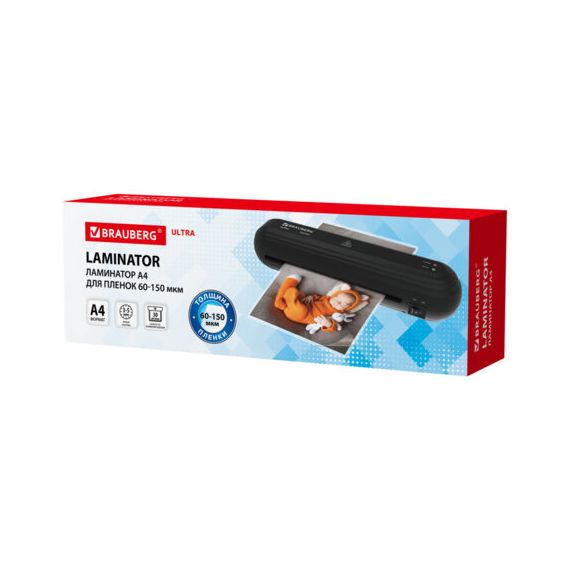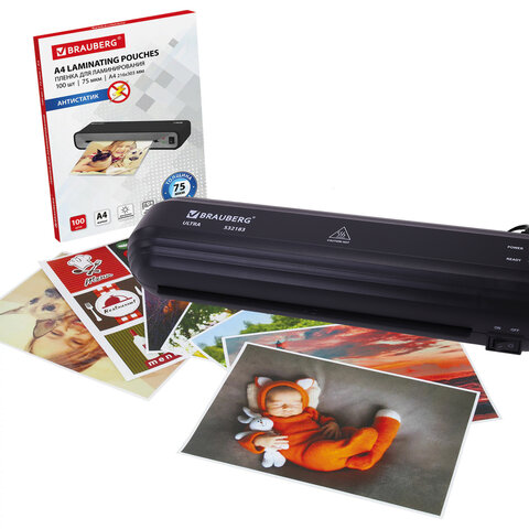 Ламинатор BRAUBERG ULTRA PM235B, ЧЕРНЫЙ, формат A4, толщина пленки 60-150 мкм, скорость 30 см/мин, 532183
