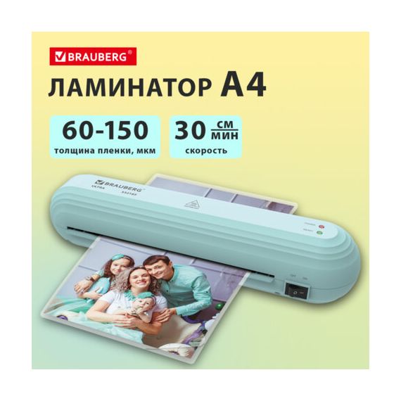 Ламинатор BRAUBERG ULTRA PM235M, МЯТНЫЙ, формат A4, толщина пленки 60-150 мкм, скорость 30 см/мин, 532185